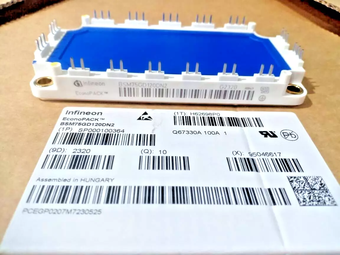 Description: a 1200 V, 75 A IGBT power module from Infineon, designed for high efficiency switching in industrial and motor control applications.