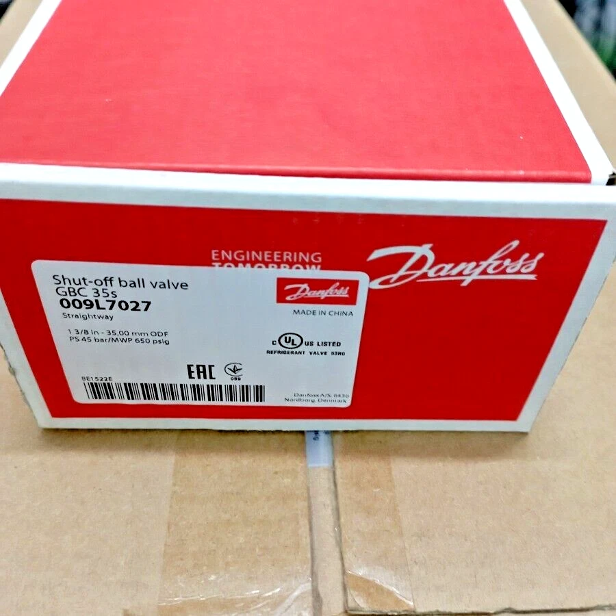 Part Number: 009L7054 Make: Danfoss Part Condition: Brand New Description: a Danfoss GBC 18s shut‑off ball valve, designed for commercial air conditioning and refrigeration systems. It features 3/4 inch ODF solder connections and includes an access port for service.